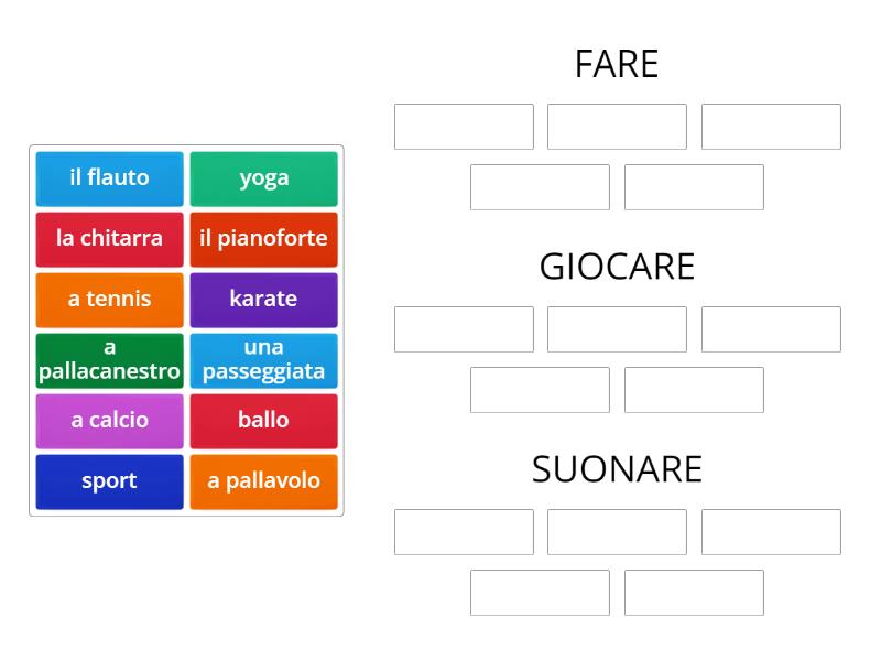 fare,giocare, suonare Ordenar por grupo